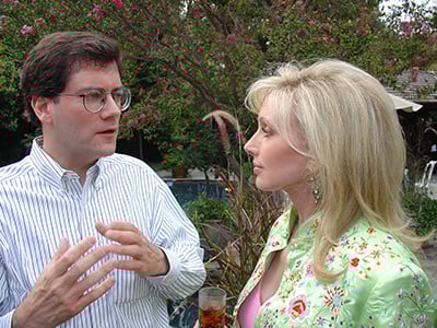Discussing disability issues with Hillary Clinton at Rob Reiner’s home, 2005.