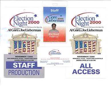 Jim Reed and Morgan Fairchild confer during 2005 Screen Actors Guild presidential campaign.