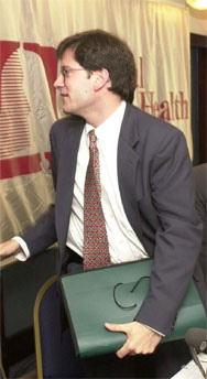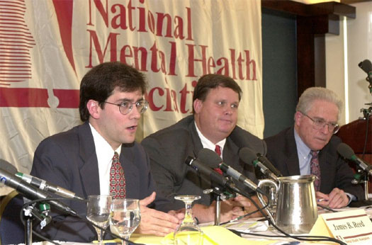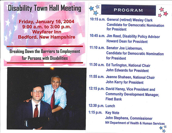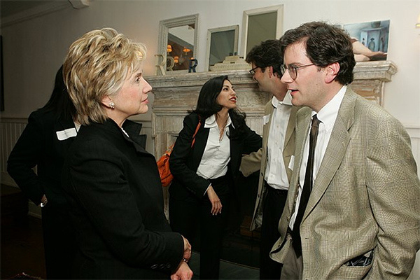 Discussing disability issues with Hillary Clinton at Rob Reiner’s home, 2005.