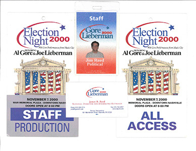 Jim Reed and Morgan Fairchild confer during 2005 Screen Actors Guild presidential campaign.